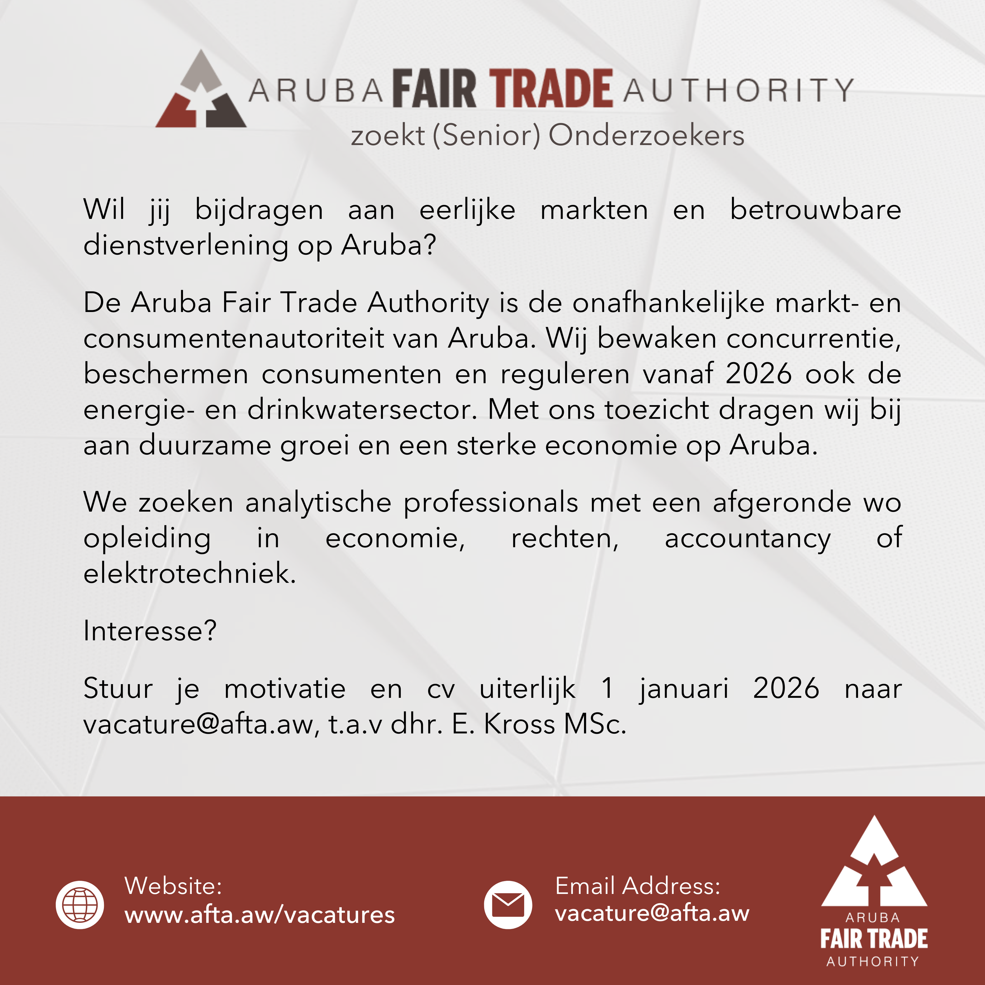 - Vacature (Senior) Onderzoekers AFTA