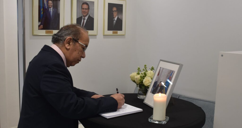 Na het openen van een condoleanceregister bij het Kabinet van de Gevolmachtigde Minister van Aruba voor ...
